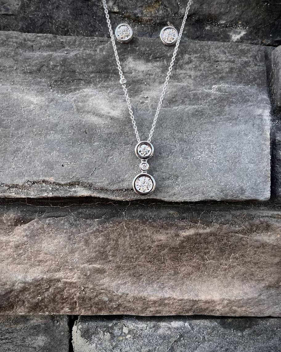14K Bezel Set Diamond Pendant & Earrings. See Prices Below